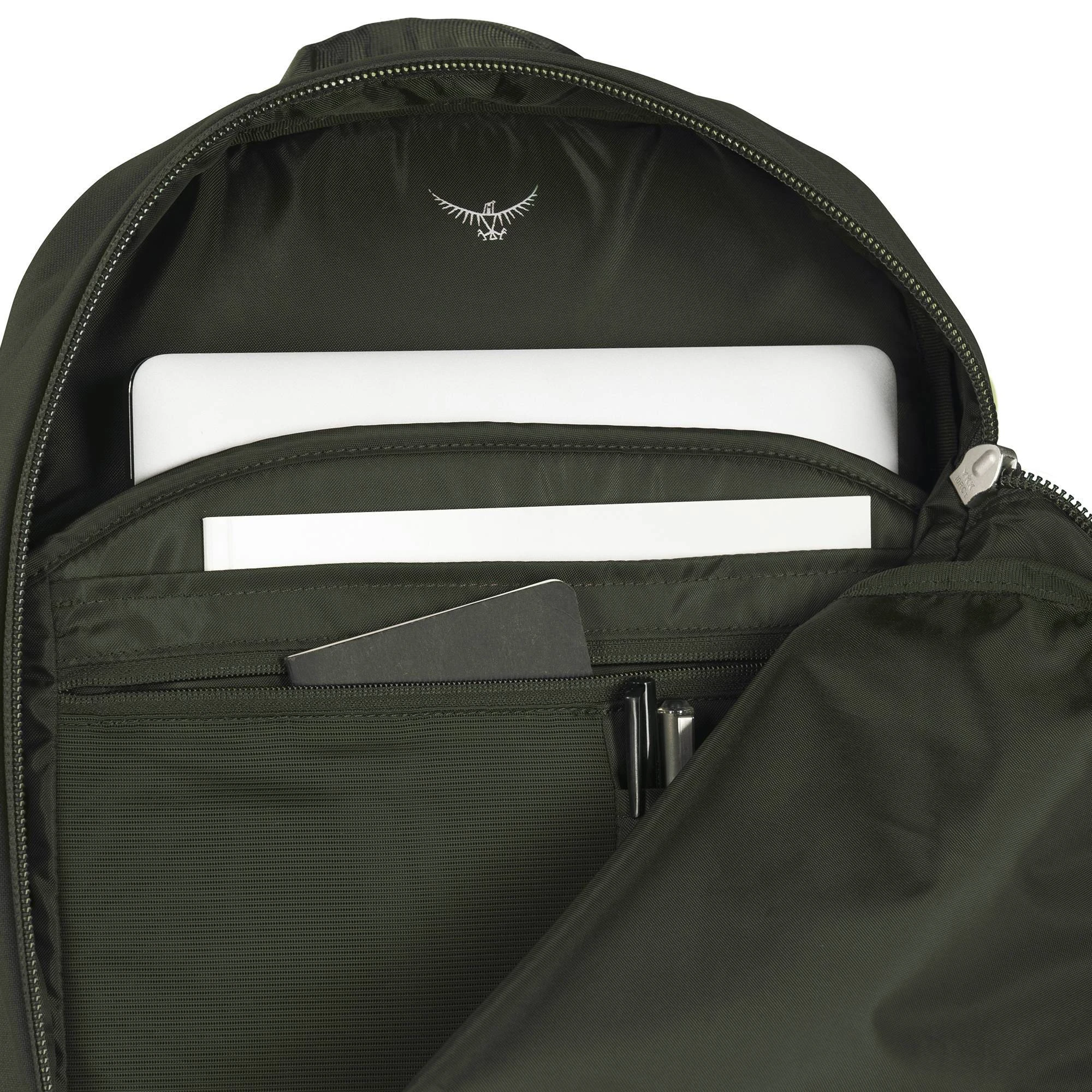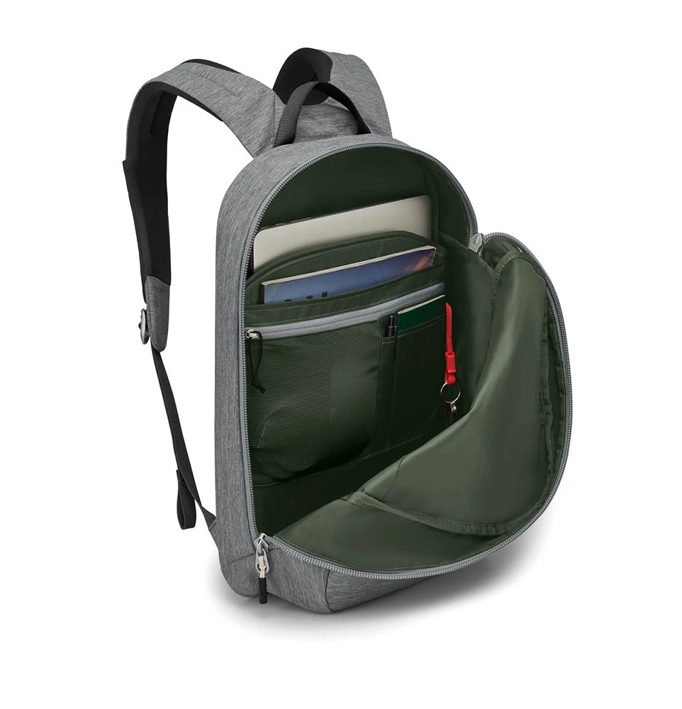 En innvedig polstret laptop-lomme, organiseringslommer og et volum på 20L har du rikelig med organiseringsmuligheter og plass til det du trenger i hverdagen. Hovedrommet har den store «koffertåpningen» som Osprey er kjent for, slik at du har rask tilgang til å pakke tingene dine inn og ut. En horisontal ripefri lomme på utsiden gir sikker oppbevaring og lynrask tilgang til viktige saker.